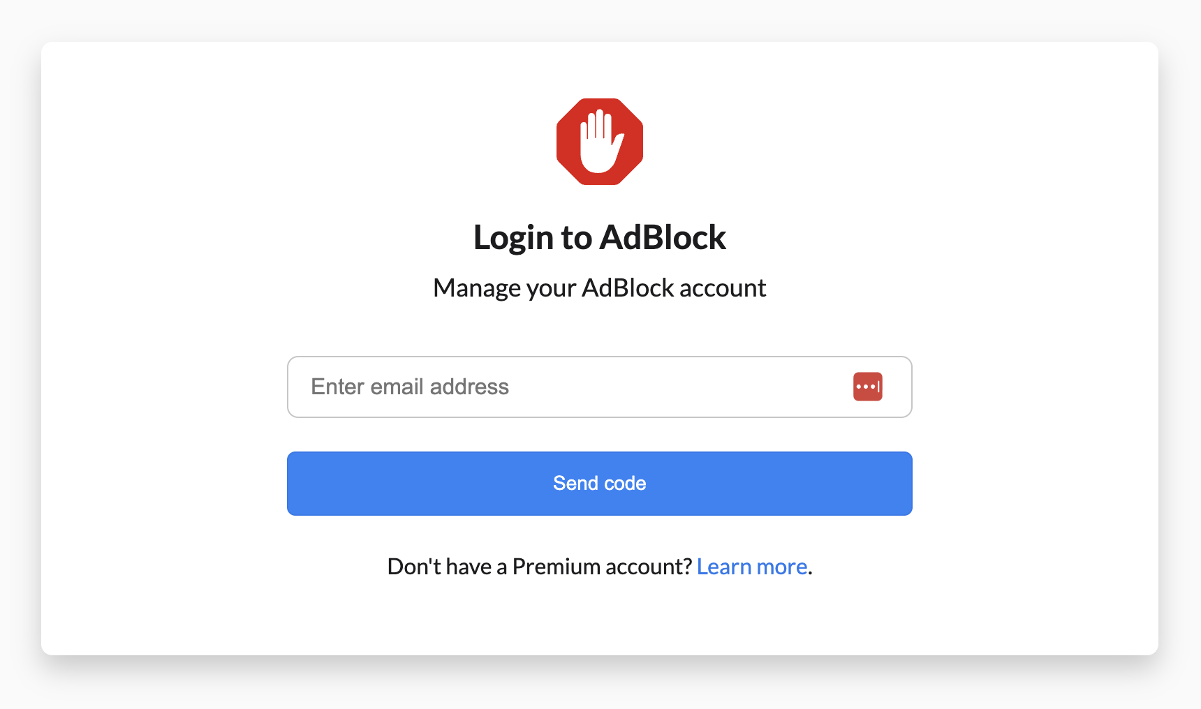Important: Before you can manage your account, make sure you're logged in and the Premium badge appears on the AdBlock menu. For step-by-step login instructions, see Unlock AdBlock Premium.