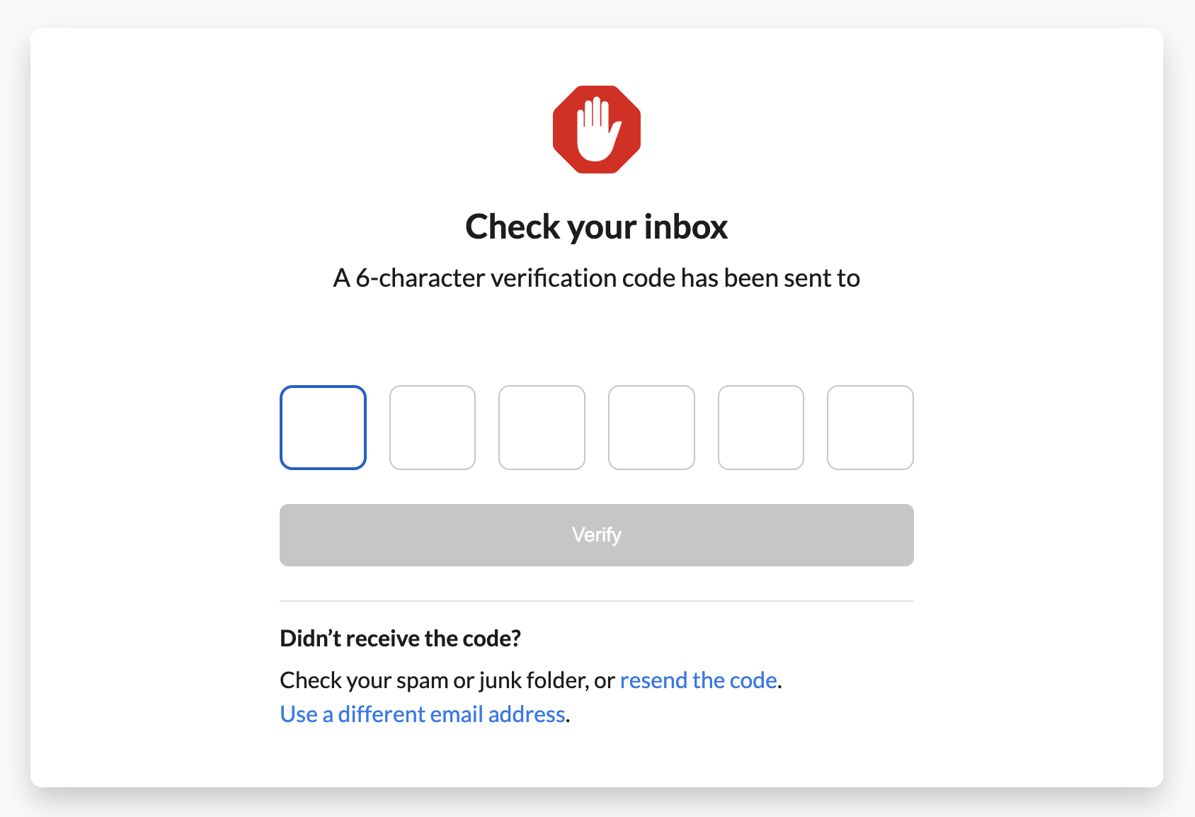 If you didn't receive a code, be sure to check your spam folder. For all other issues, reach out to us for assistance: Submit a support request. Please let us know at which step you are getting stuck.