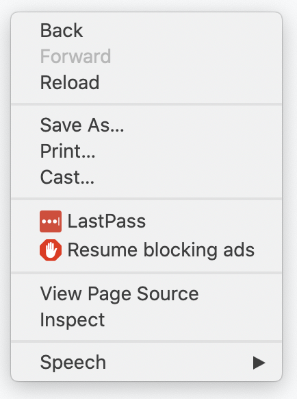 Pause and unpause AdBlock using the page context menu in Chrome, Edge, and Firefox